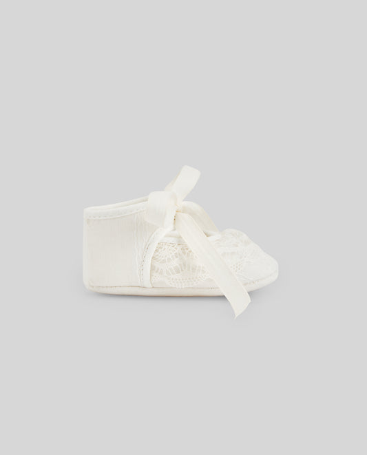 PAZ RODRIGUEZ Scarpina Cerimonia Pizzo con Fiocco Colore Crema Primavera-Estate