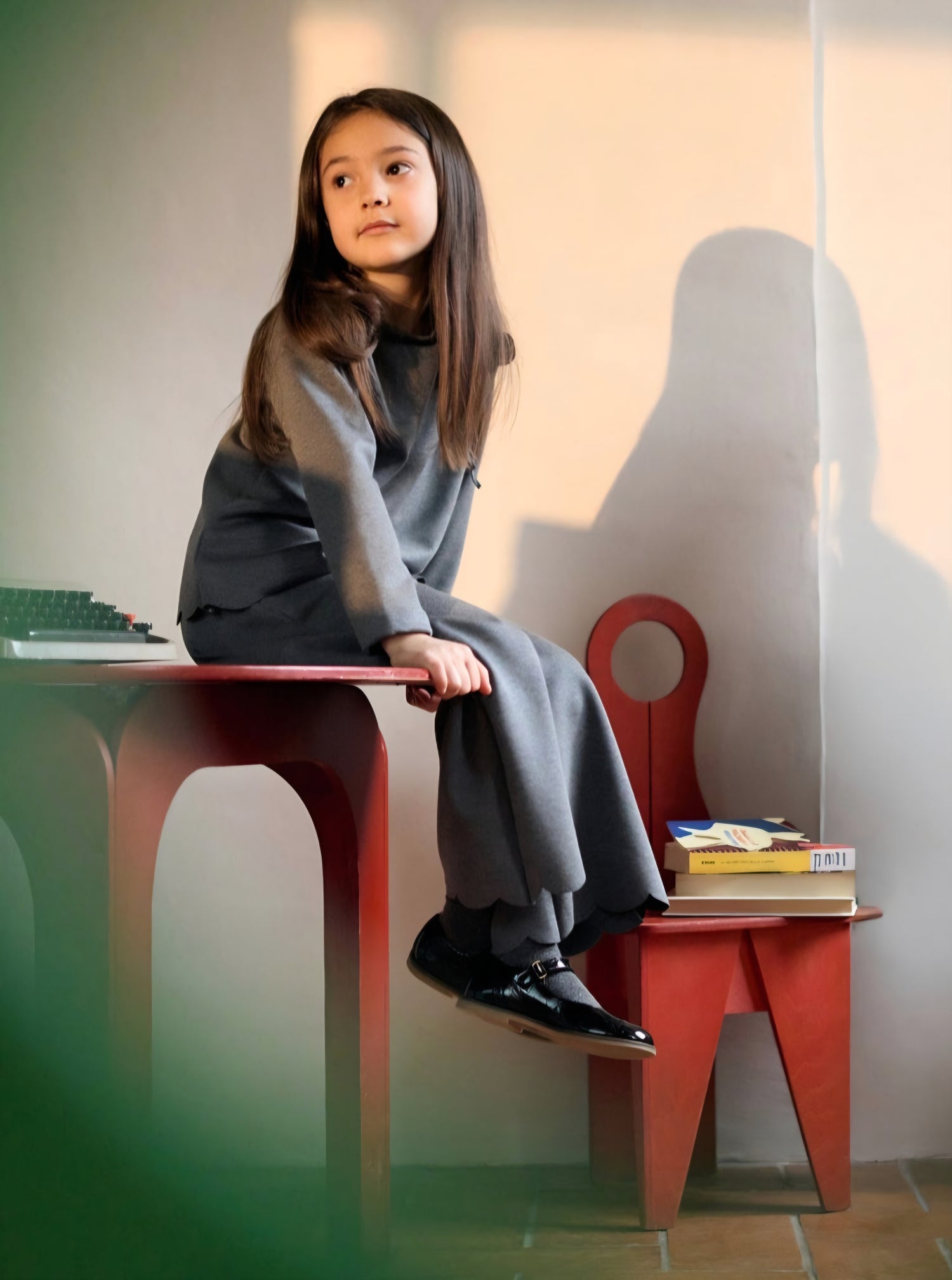 ELSY Bambina Completo 2 pezzi Maglia Calata+Shorts Trecce Rosa Antico Autunno-Inverno