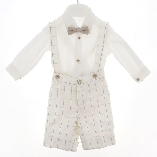 COLORICHIARI Completo 4 pezzi Cardigan Filo-Pantaloncino con bretelle-Camicia-Papillon Primavera-Estate