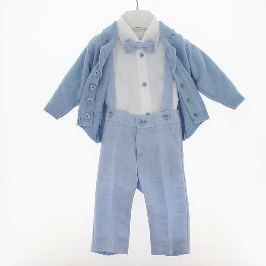 COLORICHIARI Completo 4 pezzi Celeste-Bianco Cardigan-Camicia-Papillon-Salopette Autunno-Inverno