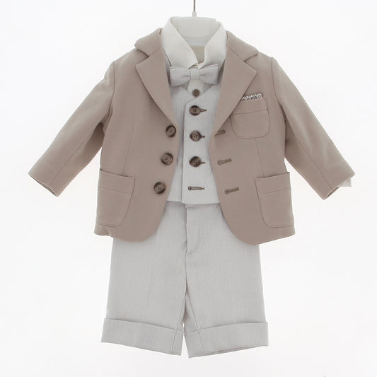 COLORICHIARI Completo 5 pezzi Beige Giacca-Pantalone-Camicia-Papillon-Pochette Autunno-Inverno
