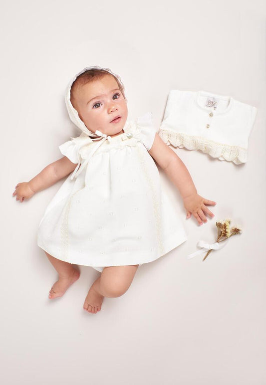 PAZ RODRIGUEZ Vestito+Cuffia+Coulotte Cerimonia Sangallo Crudo Primavera-Estate