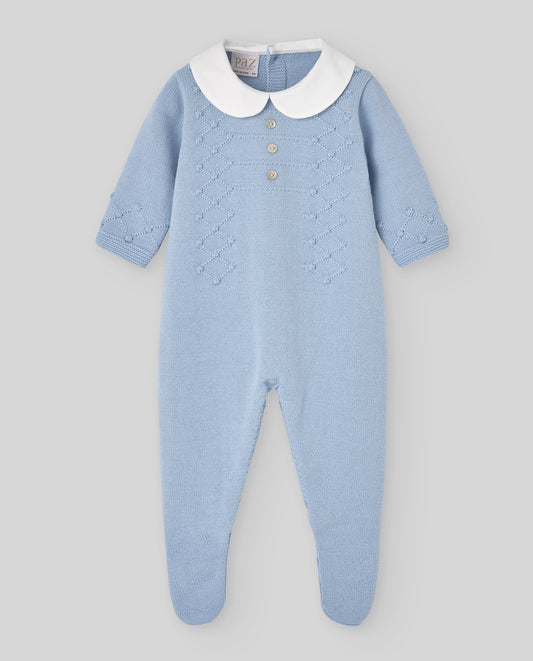 PAZ RODRIGUEZ Tutina Intera con Piedino + Cappellino Lana merino Extrafine Celeste Autunno-Inverno
