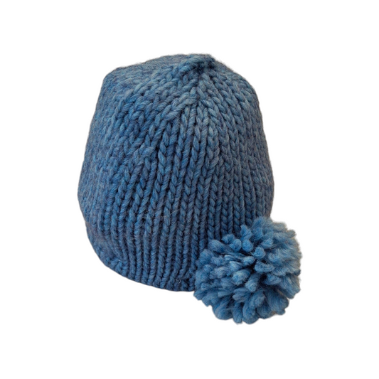 MALVI & CO. Cappello in Lana Grossa con Pom Pon Azzurro Carta da Zucchero