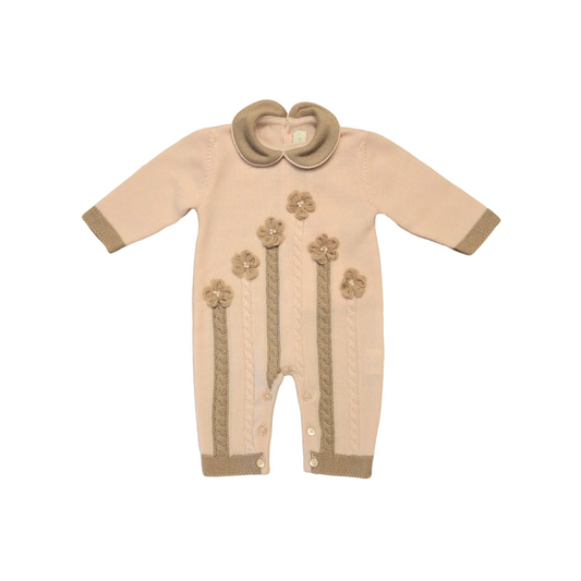 COLORICHIARI Set 3 Pezzi Tutina+Cappello+Babbucce Lana Extrafine Rosa-Beige Autunno-Inverno
