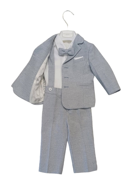 COLORICHIARI Completo 5 pezzi Giacca-pochette-Camicia-papillon-pantalone Celeste-Bianco
