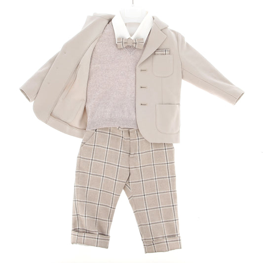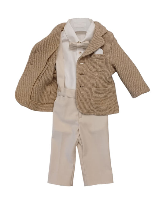 COLORICHIARI Completo 5 pezzi Beige Giacca-Pantalone-Camicia-Papillon-Pochette Autunno-Inverno