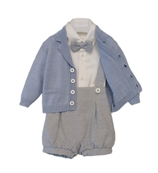 COLORICHIARI Completo 4 pezzi Celeste-Bianco Cardigan-Camicia-Papillon-Salopette Autunno-Inverno