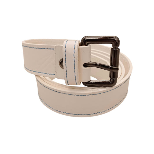 MANUELL & FRANK Cintura Boy Vera Pelle Bianco-Celeste