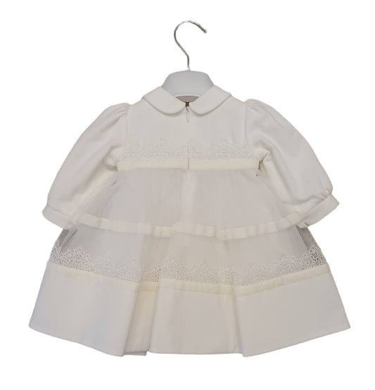 COLORICHIARI Abito Cerimonia Manica Lunga Pizzo Crema Chiaro