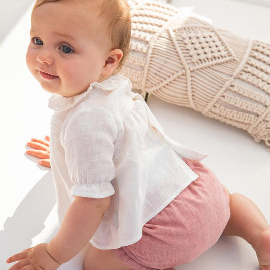 TUTTO PICCOLO Completo 2 pezzi Blusa Lino+Coulotte Panna-Rosa Antico Primavera-Estate