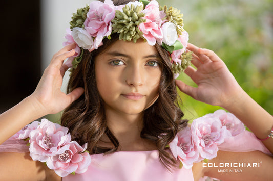 PAZ RODRIGUEZ Coroncina Cerimonia Fiori Rosa Antico-Panna