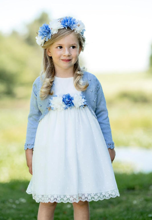 PAZ RODRIGUEZ Coroncina con fiori Azzurro Polvere-Bianco