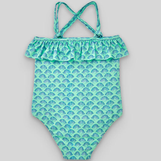 PAZ RODRIGUEZ Costume Intero Verde Lago Fantasia Conchiglie