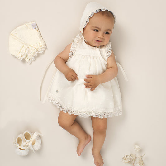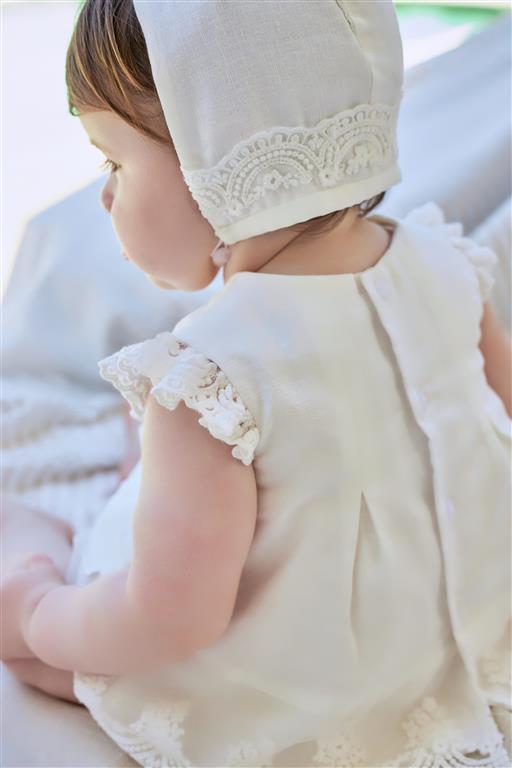 PAZ RODRIGUEZ Abitino Cerimonia con Cuffia e Coulotte Cotone Avorio