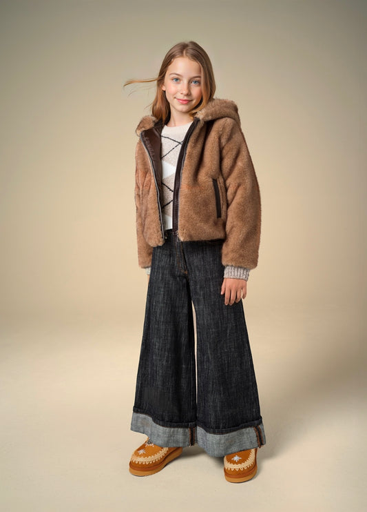 ELSY Girl Giaccone Corto Ecopelliccia Tortora
