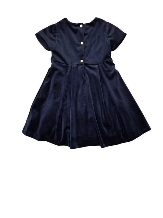 MALVI & CO. Vestito Bambina in Velluto Blu Navy con Ricamo Autunno-Inverno