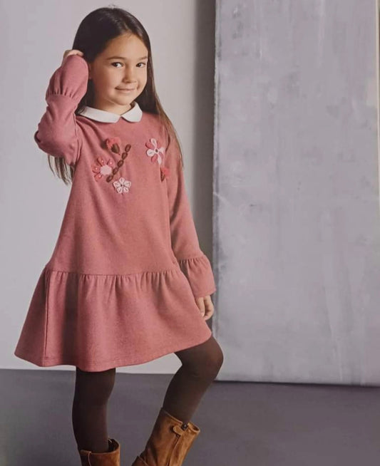 MALVI & CO. Vestito in Flanella con Punto Smock Rosa Autunno-Inverno