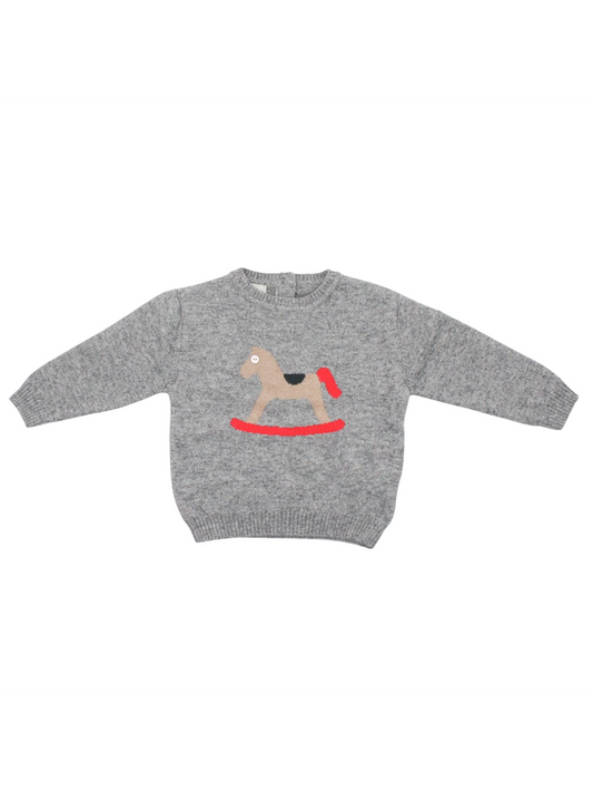 MALVI & CO. Isi Boy Pullover Lana-Cashmere con Intarsio Cavallo a Dondolo Grigio Melange Autunno-Inverno