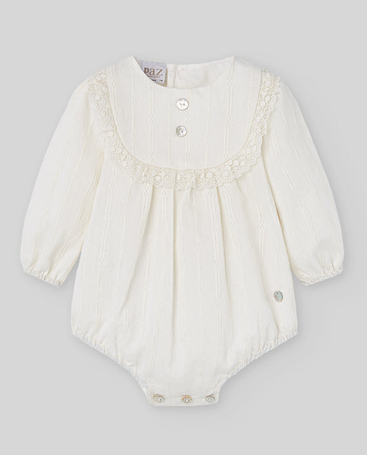 PAZ RODRIGUEZ Pagliaccetto con Cuffia Cotone Avorio