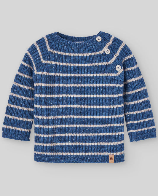 PAZ RODRIGUEZ Cappotto Baby con Cappuccio in Maglia Blu Melange Autunno-inverno