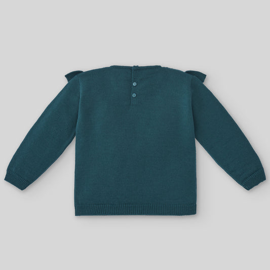 ELSY Bambina Maglia Orsetto Bianco Naturale-Verde Militare Autunno-Inverno