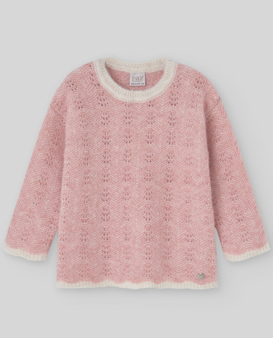 ELSY Bambina Completo 2 pezzi Maglia Calata+Shorts Trecce Rosa Antico Autunno-Inverno