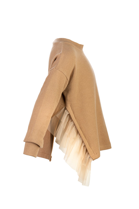 ELSY Girl Maglia Corta con Spacco e Tulle Biscotto