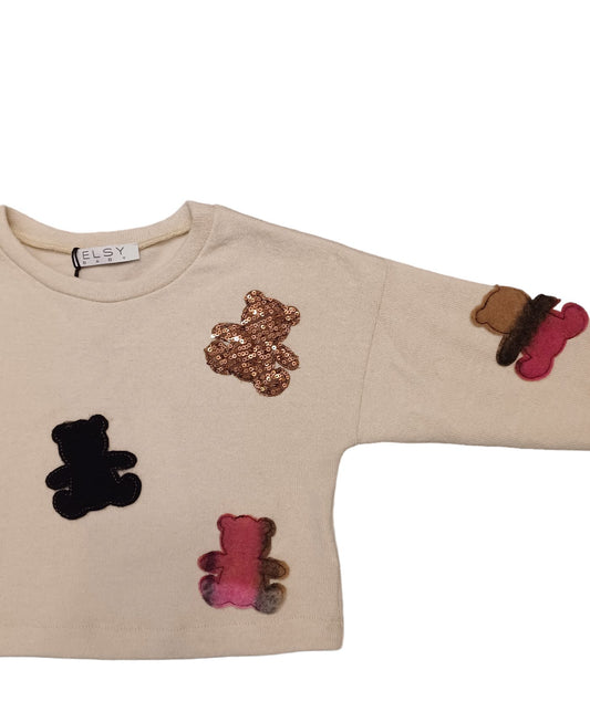 ELSY Bambina Maglia Calata Fantasia Orsetti Panna-Cammello-Rosso Autunno-Inverno