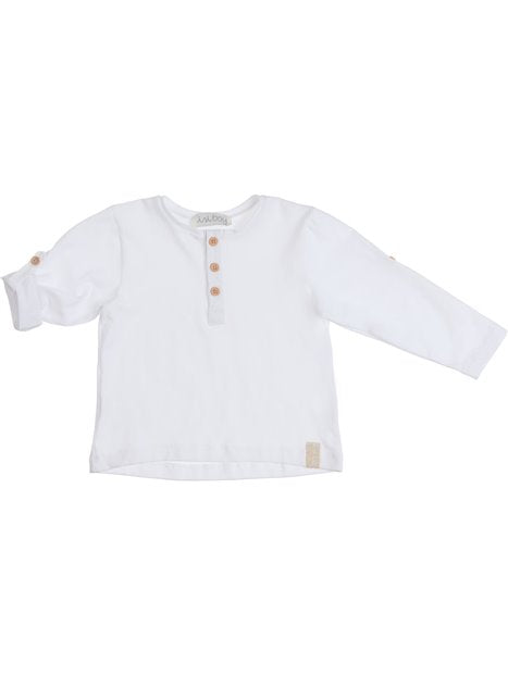 MALVI & CO. Camicia bimbo serafino in jersey bianco con rifiniture in poplin bianco