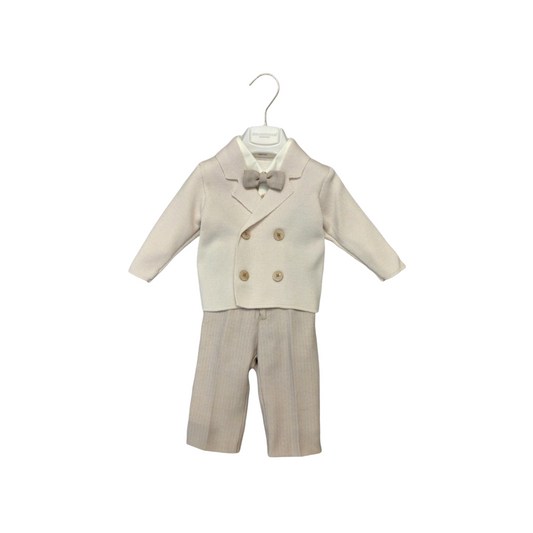 COLORICHIARI Completo 4 Pezzi Pantalone con Bretelle Camicia Papillon Cardigan Lana Sabbia Autunno-Inverno