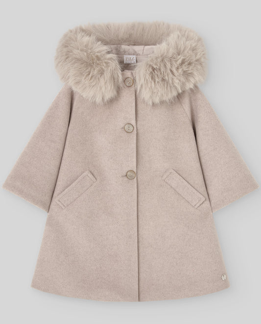 PAZ RODRIGUEZ Cappotto con Cappuccio e Bordo in Ecopelliccia Nocciola