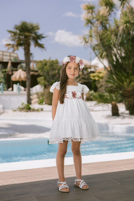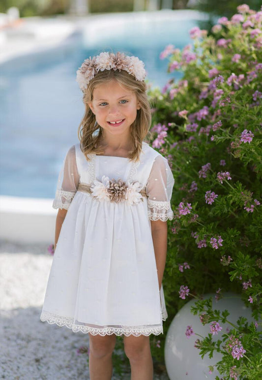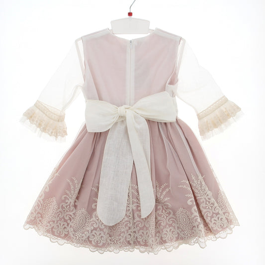 COLORICHIARI Cream Ceremony Dress with Antique Pink Sash