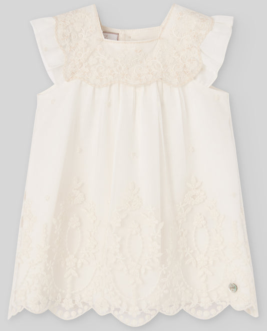 PAZ RODRIGUEZ Vestito+Coulotte Cerimonia in Tulle Ricamato Color Crema Primavera-Estate