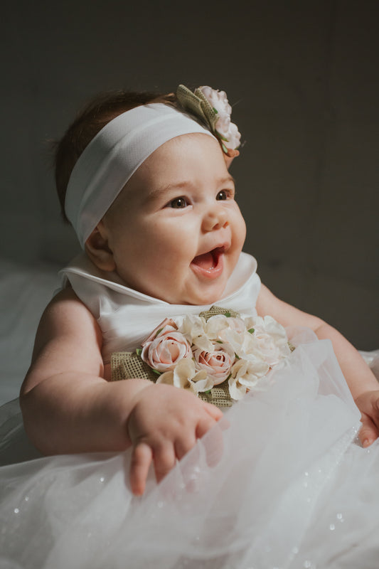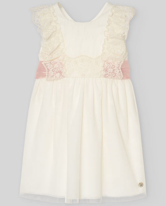 COLORICHIARI Abito Baby Cerimonia Tulle-Organza Bianco Latte-Rosa Antico
