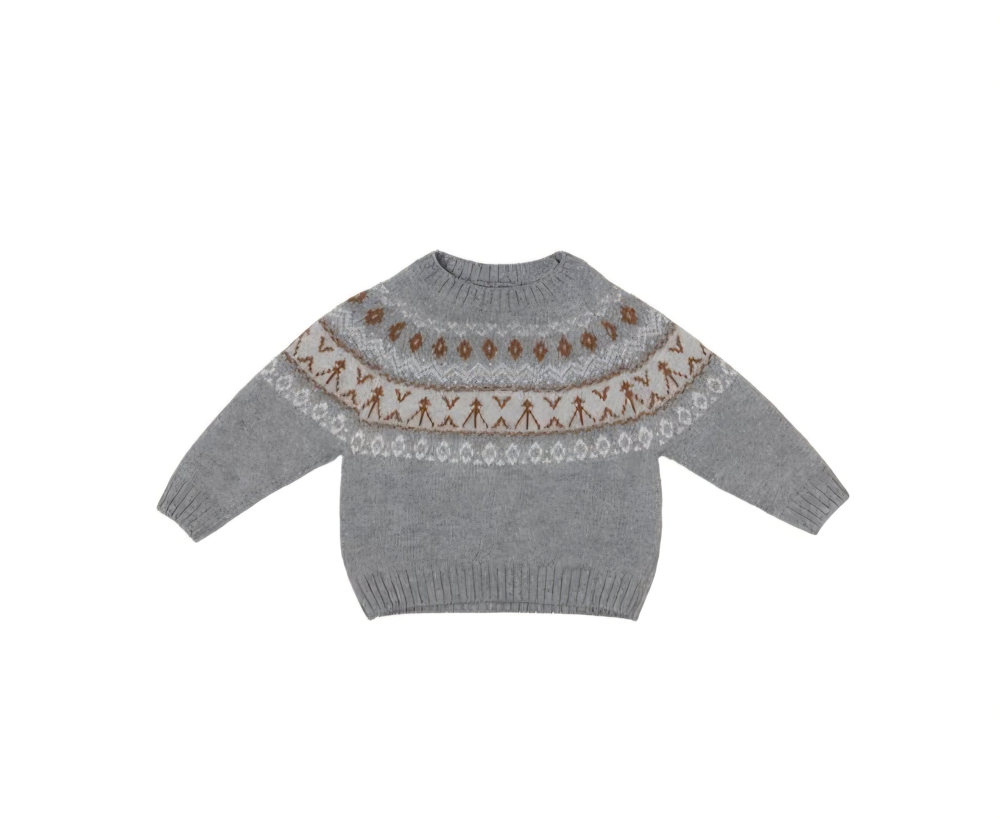 MALVI & CO. Isi Boy Pullover in Lana-Cashmere con Jacquard Grigio Melange Autunno-Inverno
