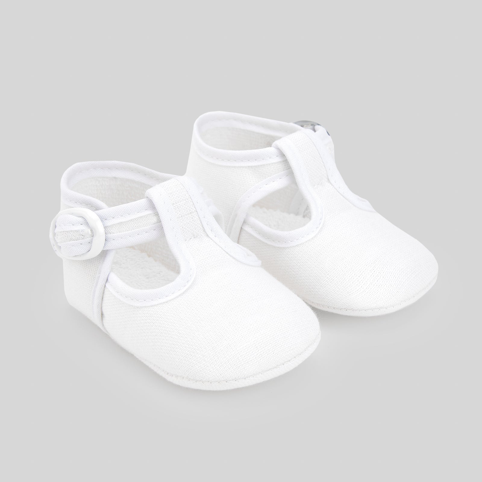 Scarpina baby in misto lino colore bianco, allacciatura laterale con fibietta.