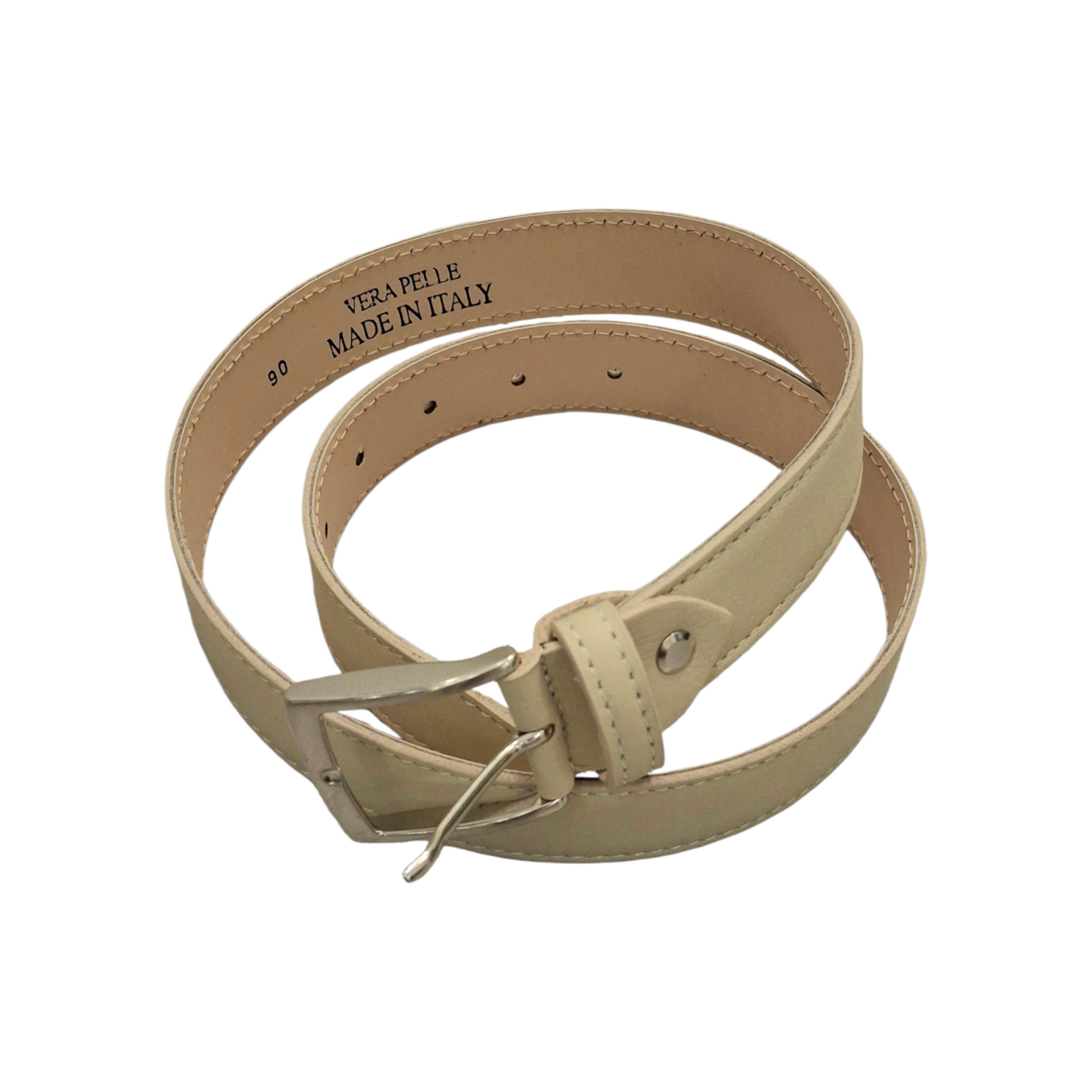 Cintura in vera pelle color fango, fibbia in metallo.