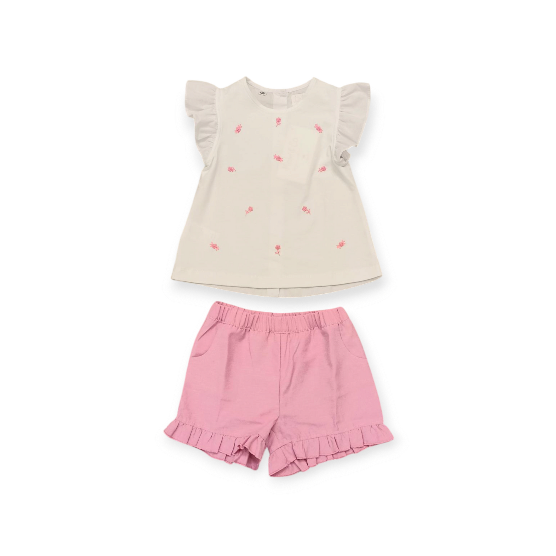 MALVI & CO. Completo Due Pezzi T-Shirt Cotone Bianco + Shorts Camelia Primavera-Estate