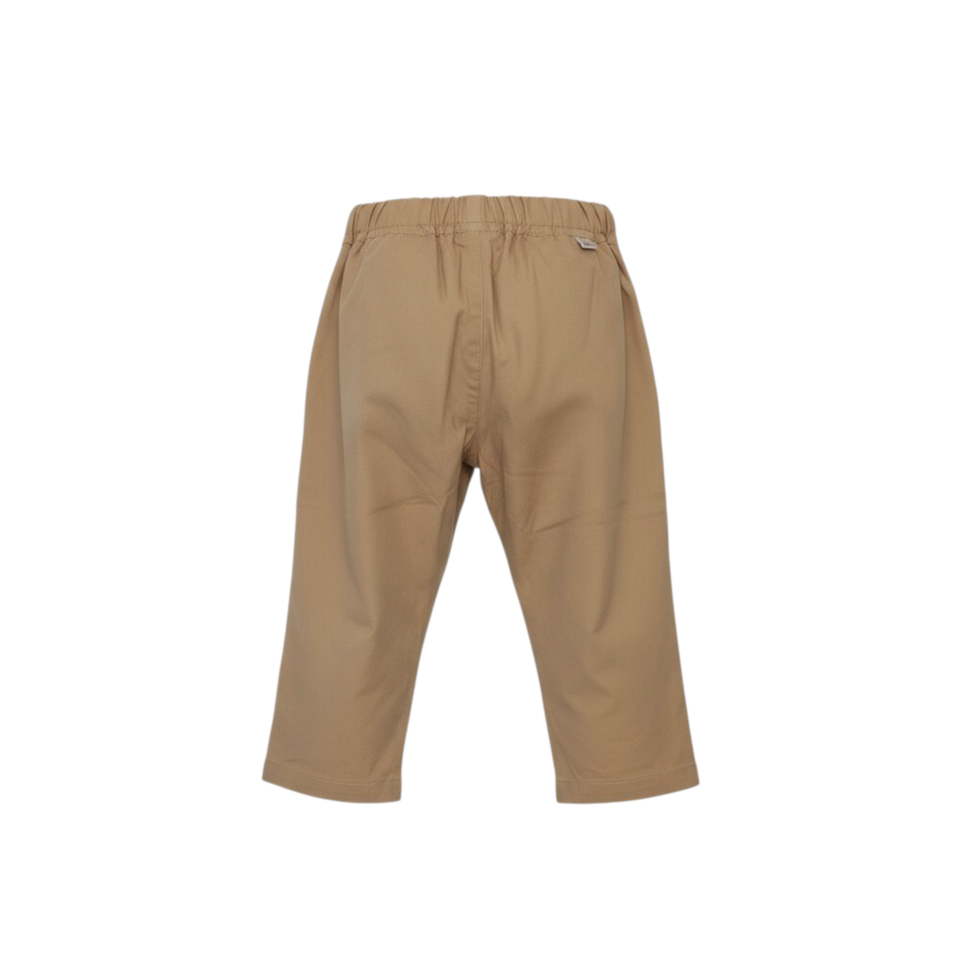 Pantalone chino baby beige, tasche a filo, elastico in vita sul retro, chiusura con bottone sul davanti.