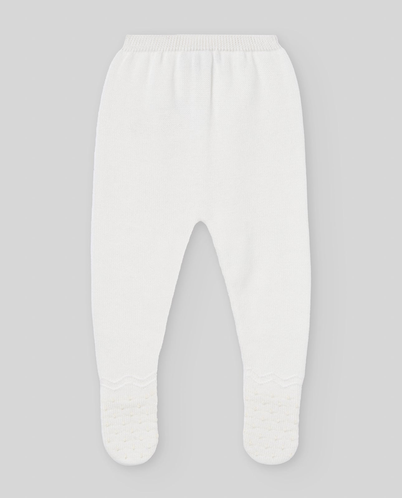 Ghettina lavorata a maglia in filo di cotone panna, picot beige sui piedini sul davanti, elastico in vita;
