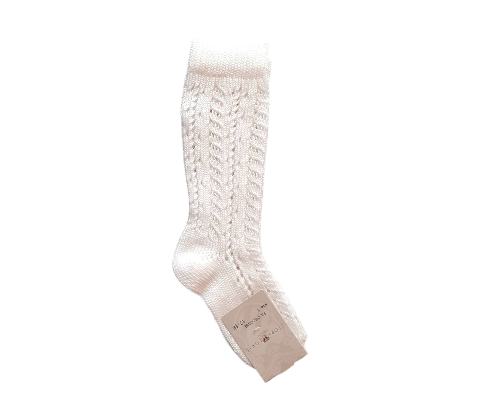 STORY LORIS Calzino Lungo Filo Cotone Traforato Avorio Primavera-Estate