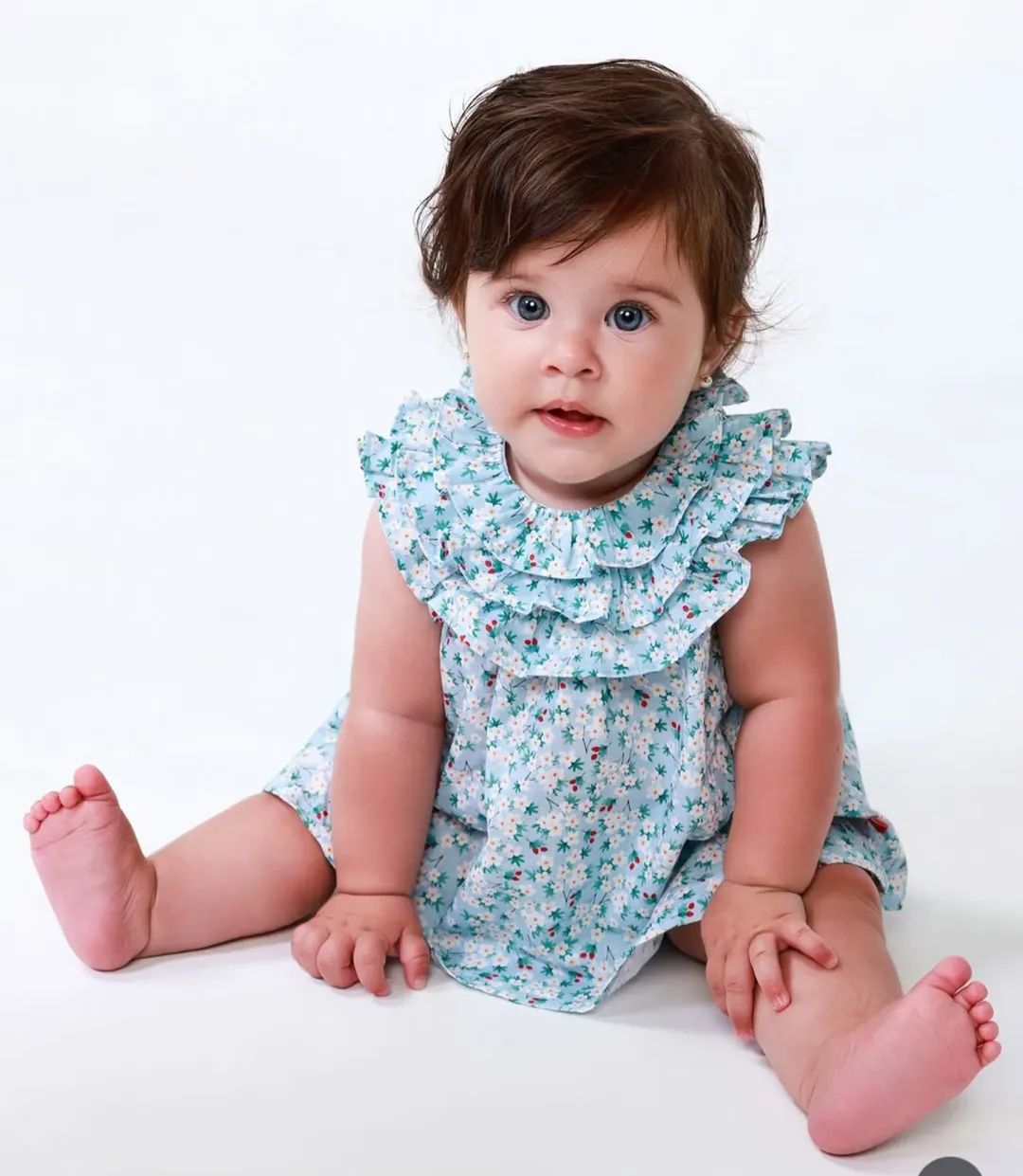 TUTTO PICCOLO Abitino con Coulotte Stampa Fiori Verde-Acqua Primavera-Estate