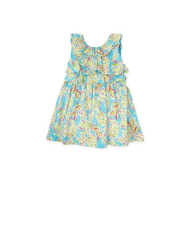 TUTTO PICCOLO Abito Copricostume Cotone Fantasia Ananas Acquamarina Primavera-Estate