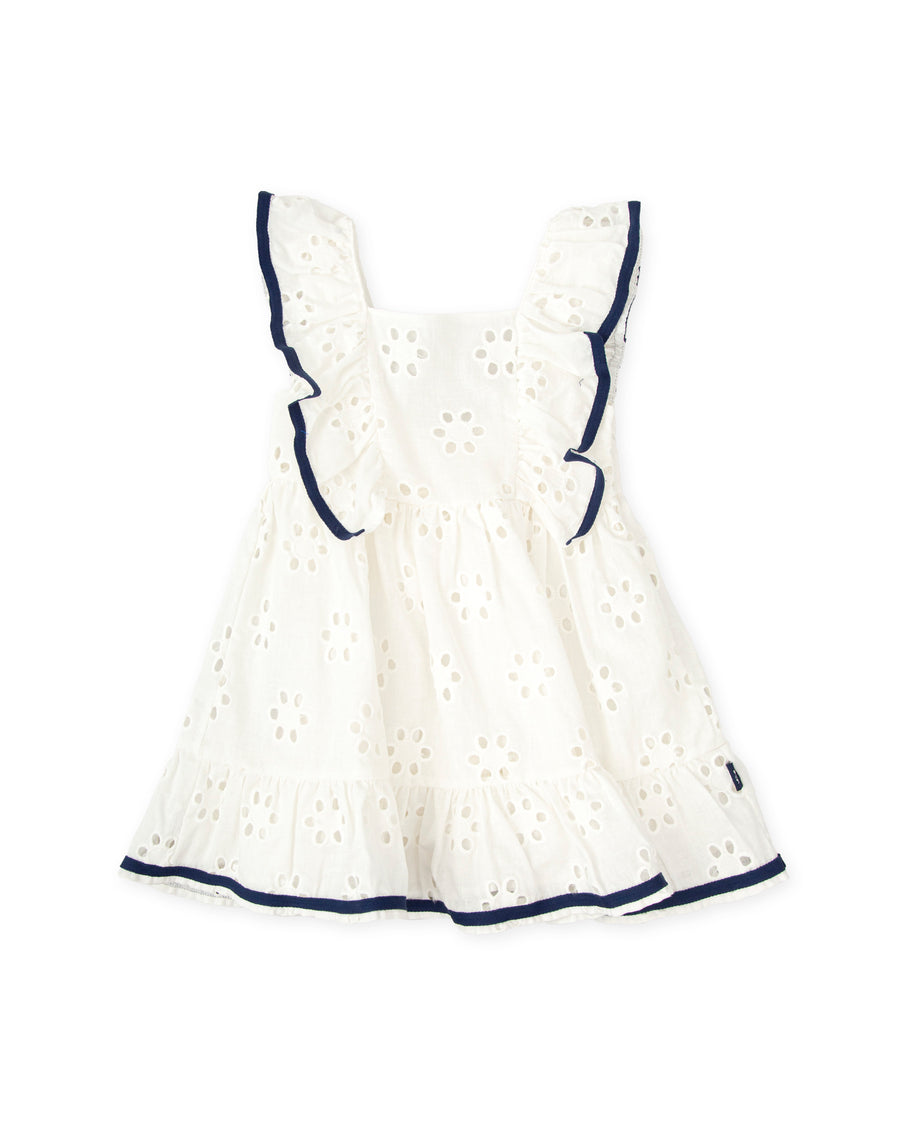 TUTTO PICCOLO Abito Pizzo Sangallo Cotone-Lino Bianco-Blu Primavera-Estate